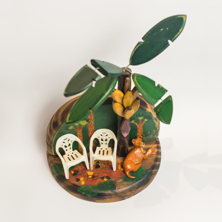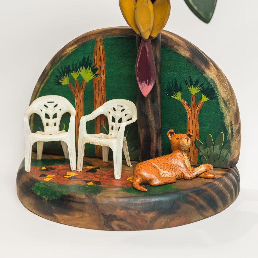 Produzido artesanalmente em madeira, Paraíso Latino carrega as marcas do processo manual e o olhar autoral que valorizam a cultura, o humor e a beleza presente nas pequenas cenas da vida cotidiana.