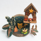 Feito à mão em madeira e cerâmica, o Presépio Amazônia é uma obra que une o sagrado ao tropical, com o olhar lúdico e afetivo da Pakatatu Estúdio.